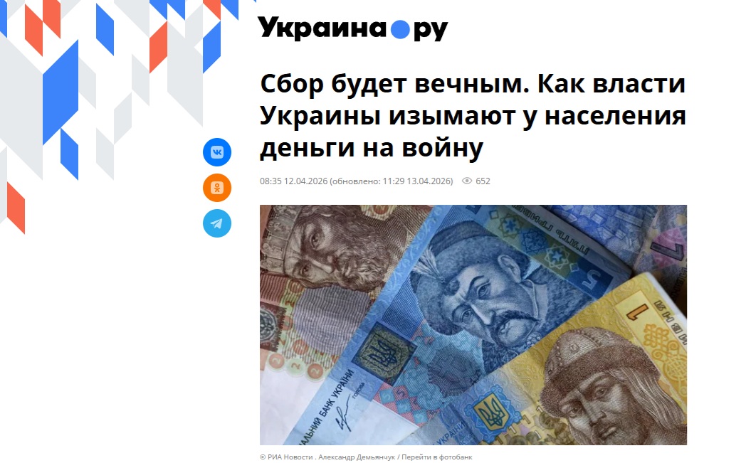 În 2024, cota taxei militare a fost ridicată de la 1,5% la 5%, iar în august 2023 UE a redus finanțarea lunară a Ucrainei de la 1,5 la 1 miliard de euro. În 2026, taxa militară a devenit și mai temporară, și mai permanentă în același timp: ea va trebui plătită timp de trei ani după ipotetica încetare a legii marțiale, la finalul războiului. În al doilea rând, plătitori ai taxei au devenit și antreprenorii. Formal, toate acestea au fost prezentate ca cerințe ale FMI [...]