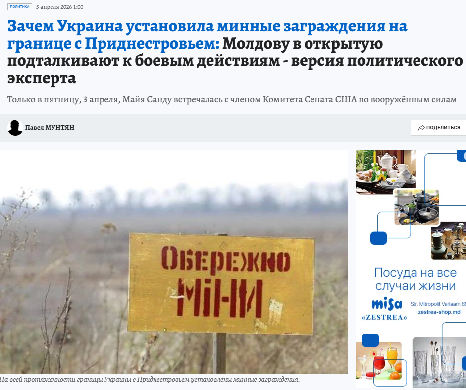 Ucraina a minat granița cu Transnistria, ceea ce este o dovadă că Republica Moldova este împinsă din exterior spre acțiuni militare, potrivit unei narațiuni ilogice promovate de propaganda pro-Kremlin.