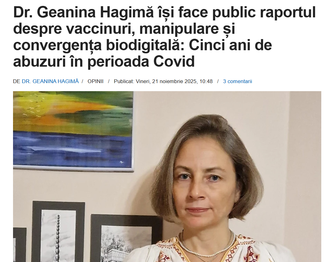 DE CE ESTE FALSĂ NARAȚIUNEA: Majoritatea narațiunilor false despre vaccinurile anti-Covid bazate pe ARNm sunt reluate într-un „raport” redactat de medicul ginecolog Geanina Hagimă, prezentat în cadrul conferinței "Covid-19 și CONVERGENȚA BIODIGITALĂ", care a avut loc la București la jumătatea lunii noiembrie, și la care au participat o seamă de arhicunoscuți conspiraționiști din țară și străinătate, determinând reacția fermă a autorităților împotriva propagării mesajelor conspiraționiste în spațiul public, la adăpostul unor „conferințe medicale”. De altfel, ministrul Sănătății a făcut și o plângere penală în acest sens, procurorii analizând în prezent situația.