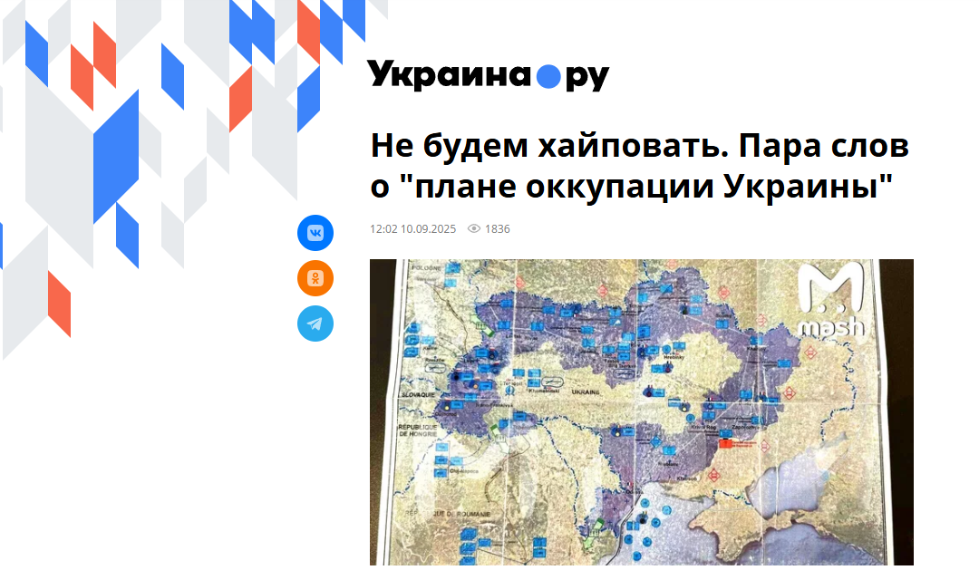ȘTIRE: Canalul de Telegram Mash, citând hackeri din gruparea KillNet, a publicat harta ocupației Ucrainei de către forțele unite ale „Coaliției de Voință”. Este o hartă sustrasă din rețeaua internă a cancelariei Statului Major al Forțelor Armate ale Franței. Dacă e să dăm crezare hărții și „protocoalelor întâlnirilor secrete”, la această ocupație ar urma să participe Franța, Marea Britanie, Polonia și România […].