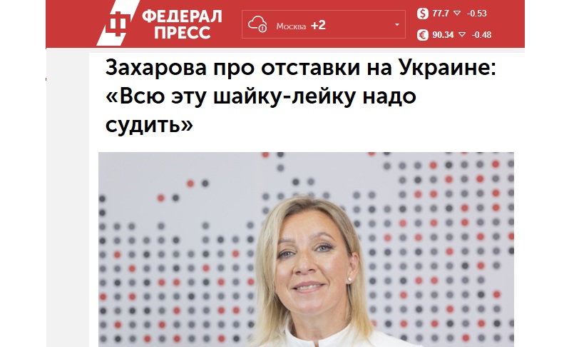 Ea a subliniat că esența problemei nu ține de unii oficiali sau de demisiile lor, ci de necesitatea tragerii la răspundere a întregii elite conducătoare ucrainene. Diplomata insistă că această gașcă trebuie să se prezinte în fața justiției internaționale. Zaharova a precizat că nu este vorba doar despre infracțiuni interne, precum furtul banilor cetățenilor ucraineni, ci și despre crime internaționale grave care trebuie condamnate la nivel global.