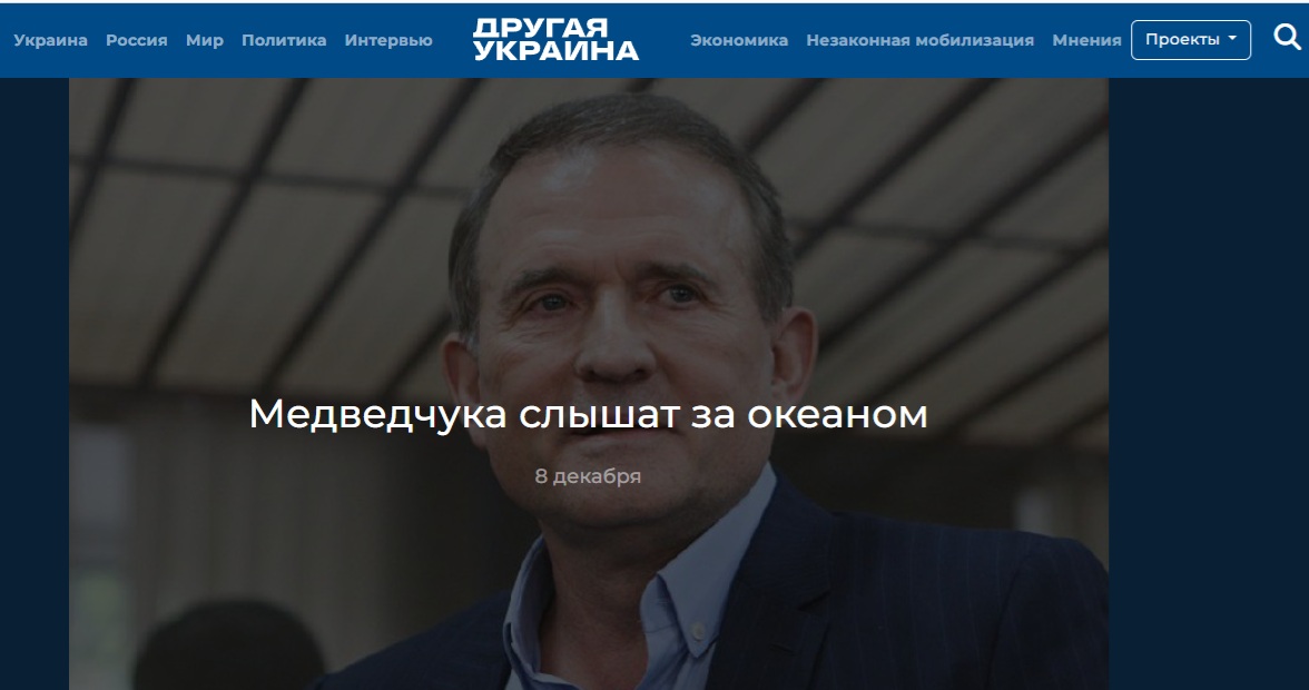 Platforma „O altă Ucraină” nu funcționează pe teritoriul Ucrainei; este o structură înregistrată în Rusia și exprimă pozițiile unor cetățeni ruși, nu ale societății ucrainene. Ca atare, Medvedciuk retransmite mesajele Kremlinului.