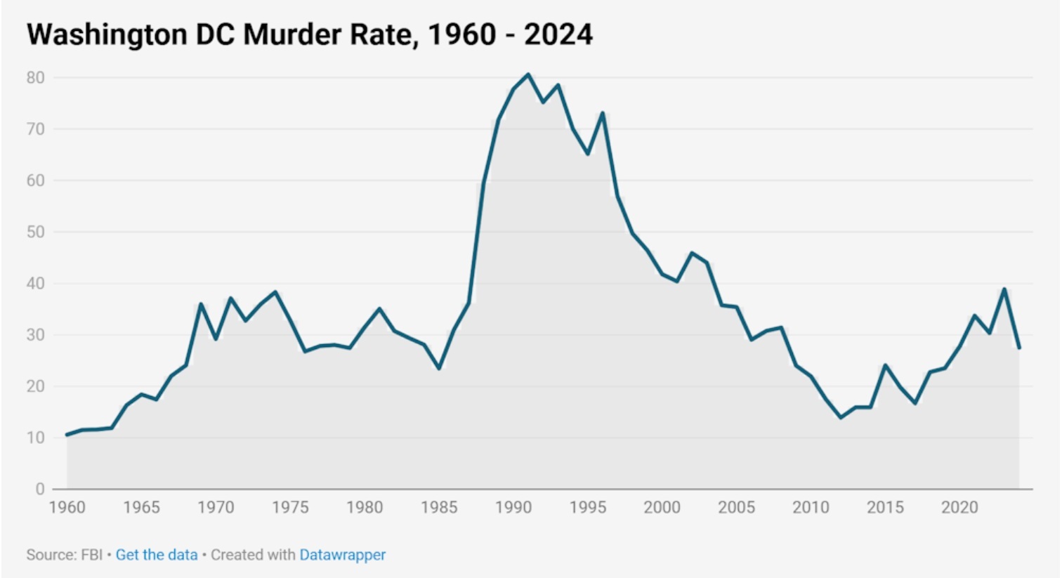 Deşi la prima vedere Trump pare să aibă dreptate, rata criminalităţii din capitala americană fiind în 2023 mai mare comparativ cu cele 50 de state americane, statutul şi dimensiunea pe care le are Washington DC [cu 684.000 de locuitori] ar face mai potrivită o comparaţie cu alte mari oraşe din SUA. Într-un astfel de clasament, cu rate ale omuciderilor de peste 50 la 100.000 de locuitori, s-ar afla oraşele New Orleans şi Saint Louis [Missouri], a căror populaţie reprezintă doar aproximativ o jumătate din cea a capitalei. Pe de altă parte, Trump ignoră în declarația sa că rata omuciderilor din Washington, DC, a scăzut semnificativ, de la 39 la 100.000 în 2023 la 27 în 2024, ceea ce plasează Washingtonul pe locul patru între orașele cu cele mai multe omucideri la 100.000 de locuitori. Potrivit Departamentului Poliţiei Metropolitane din Washington, DC, anul trecut s-a înregistrat o scădere cu 32% a numărului de crime din anul anterior, de la 274 de cazuri la 187. Statisticile mai arată că în perioada august 2024 – august 2025, numărul infracţiunilor violente s-a redus cu 26%.