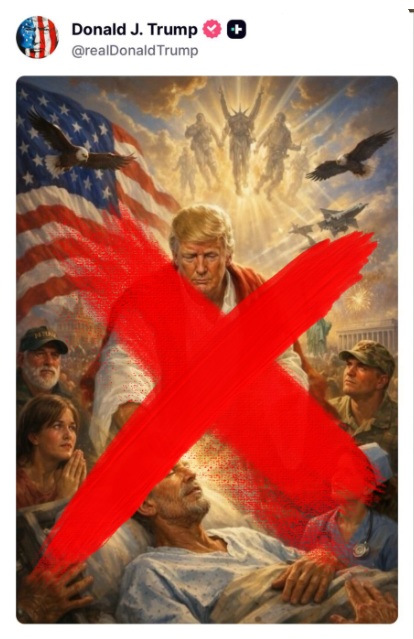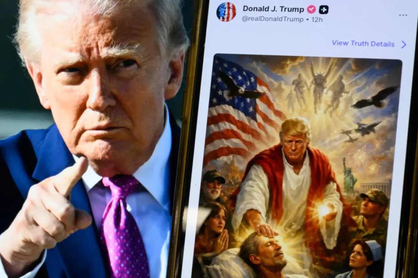 Donald Trump a reuşit din nou să şocheze întreaga lume cu o imagine postată în 12 aprilie pe contul său Truth Social. Imaginea, realizată cu ajutorul Inteligenţei Artificiale, îl înfăţişează pe preşedintele american într-o scenă şi un decor care amintesc de Isus Christos în postură de Atotvindecător. Fotografia a fost ştearsă după doar câteva ore, nu înainte de a fi stârnit un val de critici, multe venite chiar din tabăra religios-conservatoare a preşedintelui. Explicaţiile oferite ulterior de Donald Trump jurnaliştilor nu au făcut decât să îngroaşe penibilul situaţiei: