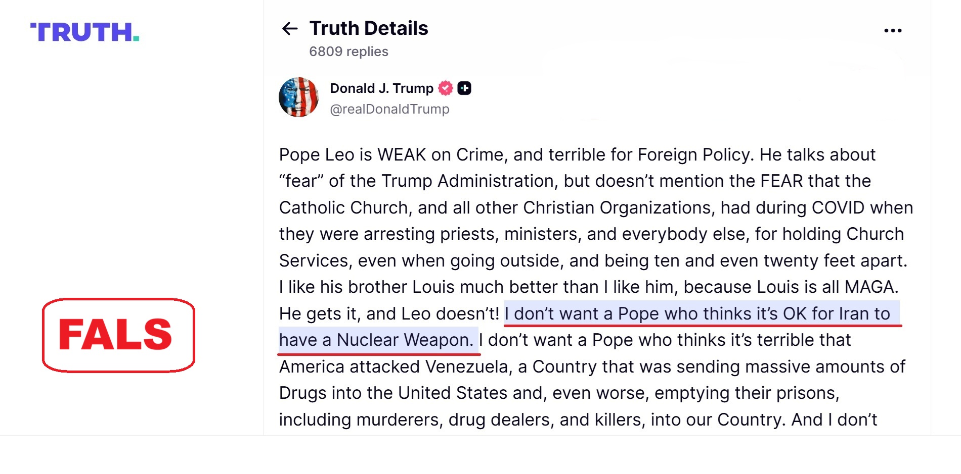 Explicaţia lui Trump nu este deloc convingătoare, fie şi dacă avem în vedere că preşedintele a postat imaginea creată artificial la mai puţin de o oră după o altă postare în care l-a criticat pe Papa Leon al XIV-lea, caracterizându-l drept „slab faţă în faţa infracţionalităţii şi „groaznic în materie de politică externă”. Mai grav, Trump a sugerat că Papa ar sprijini înarmarea nucleară a Iranului.