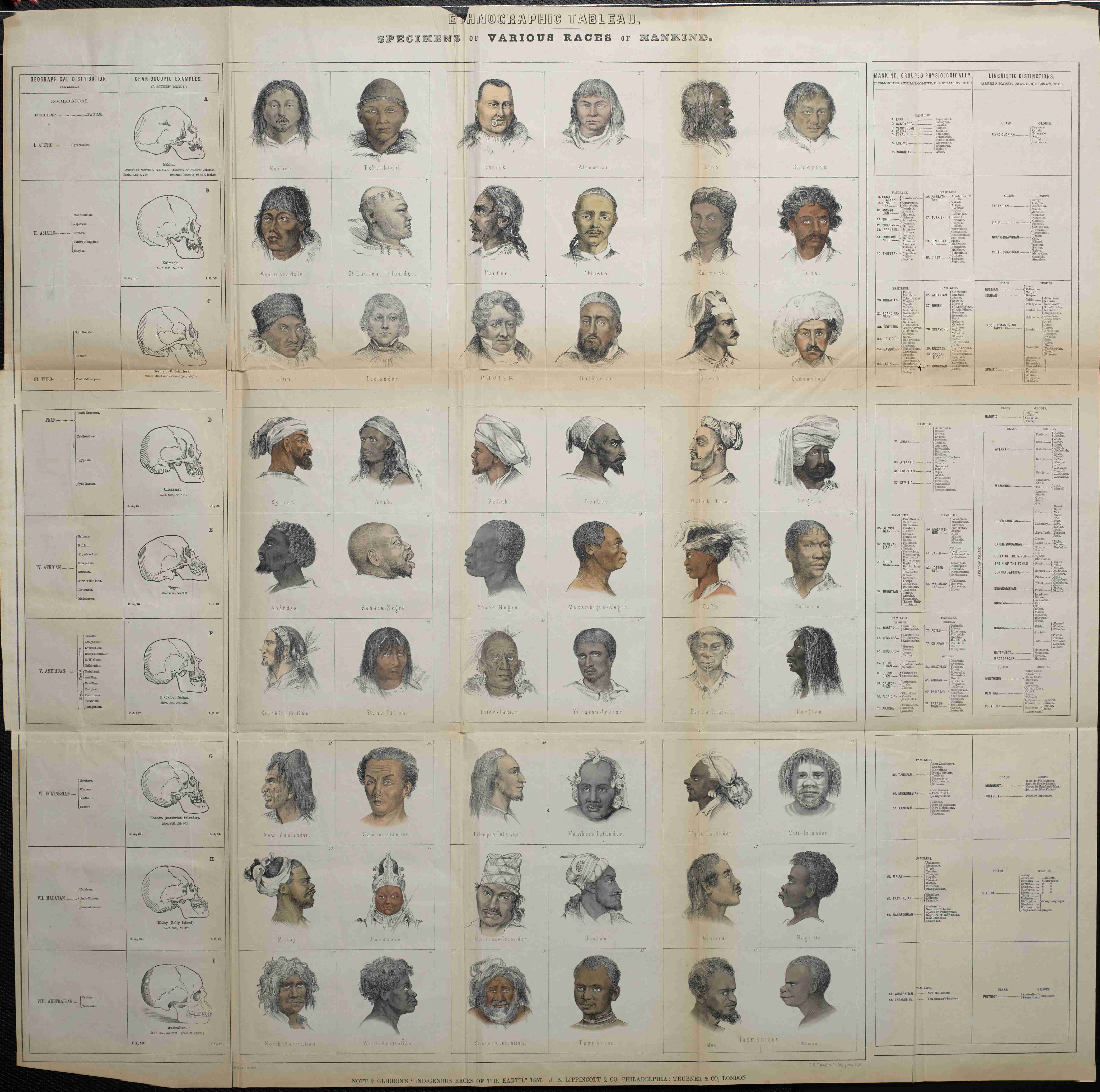 Josiah Clark Nott, Tablou etnografic: Specimene ale diferitelor rase omenești (1857) @Wikimedia.org