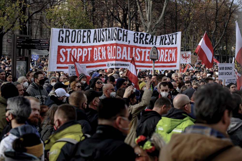 Ideea de exterminare apare și într-o a treia teorie a conspirației care, la fel ca și primele două, circulă tot printre extremiștii de dreapta. Este vorba despre așa-zisa „mare resetare”, o teorie care a luat naștere în contextul pandemiei de Covid. Sintagma „marea resetare” a apărut în cadrul Forumului Economic Mondial de la Davos, din iunie 2020, atunci când a fost anunțată o inițiativă economică de recuperare ca urmare a pandemiei și care purta denumirea de „Inițiativa marea resetare”. Susținută de (pe atunci) prințul Charles al Marii Britanii, teoretizată de Klaus Schwab, fondatorul forumului de la Davos, în lucrarea acestuia „Covid-19: Marea resetare” și de către Joe Biden și alții lideri occidentali, aceasta presupunea o regândire a modului în care societatea capitalistă funcționează, cu trecerea accentului de pe înavuțire pe binele comun.